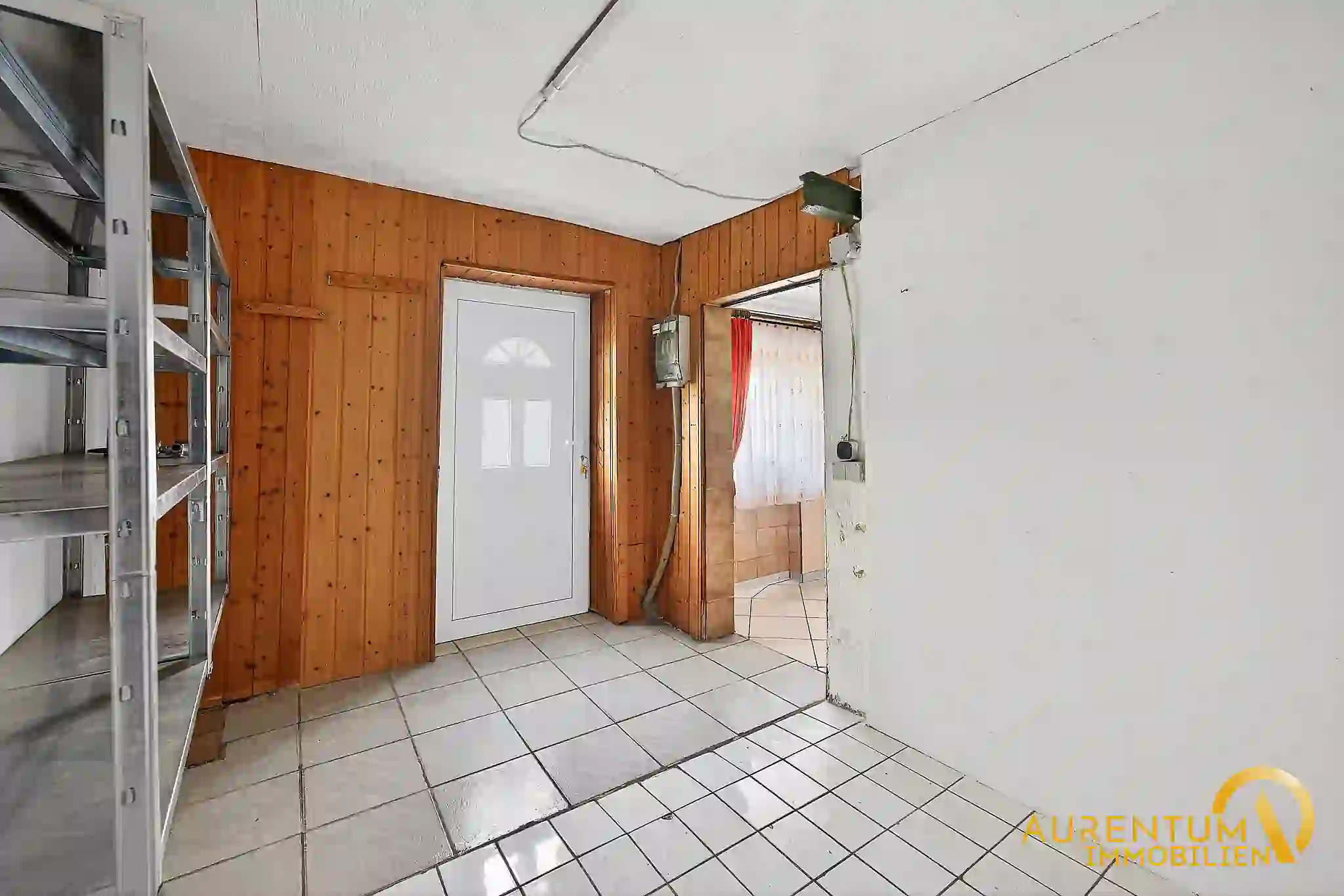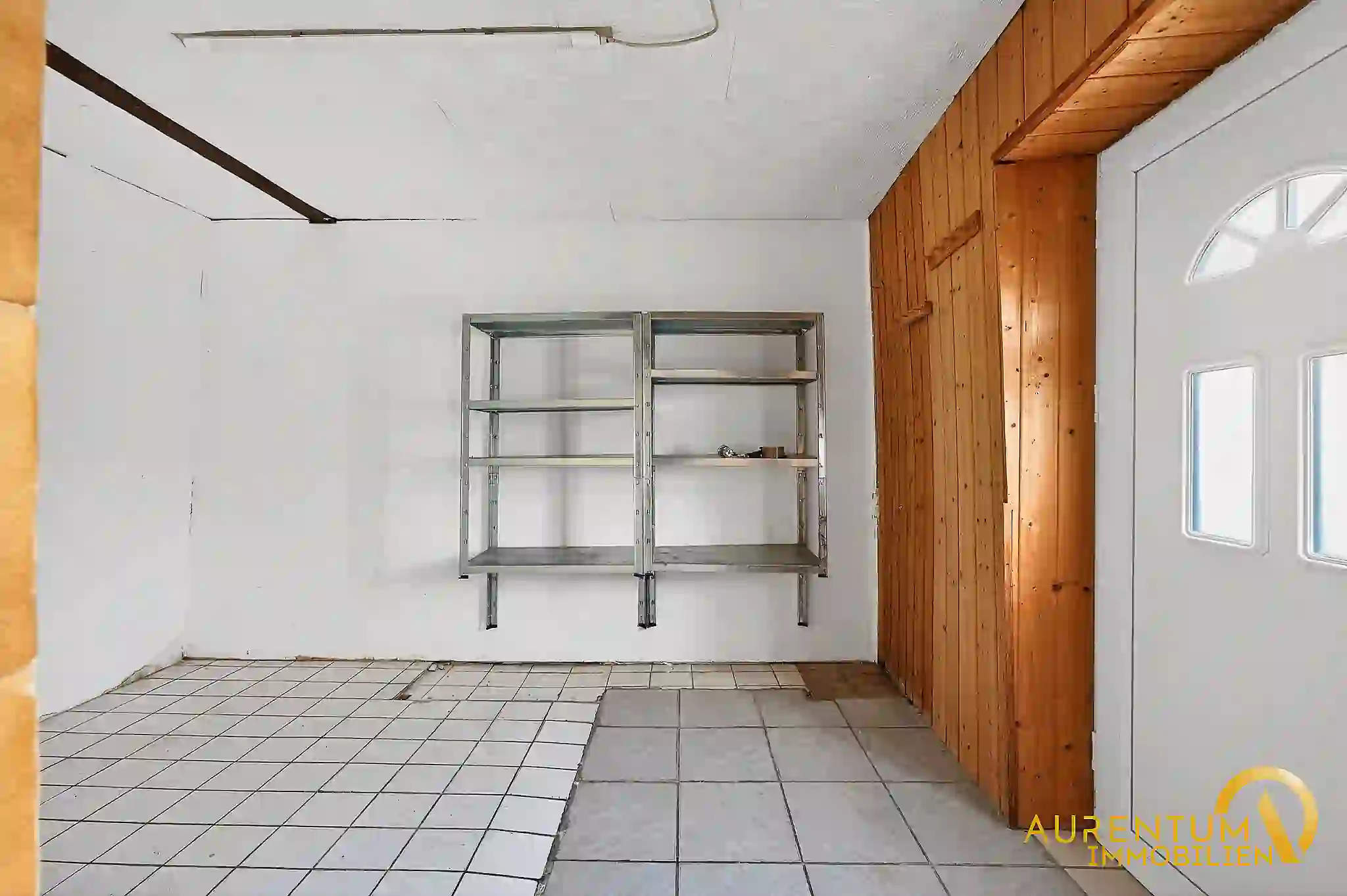Für Fahrzeuge stehen eine geflieste Einzelgarage mit elektrischem Tor sowie ein Außenstellplatz in der Einfahrt zur Verfügung. Besonders praktisch ist zudem der beheizte Werkstatt- bzw. Nebenraum – ideal für Hobby, Handwerk oder zusätzliche Lagermöglichkeiten.
