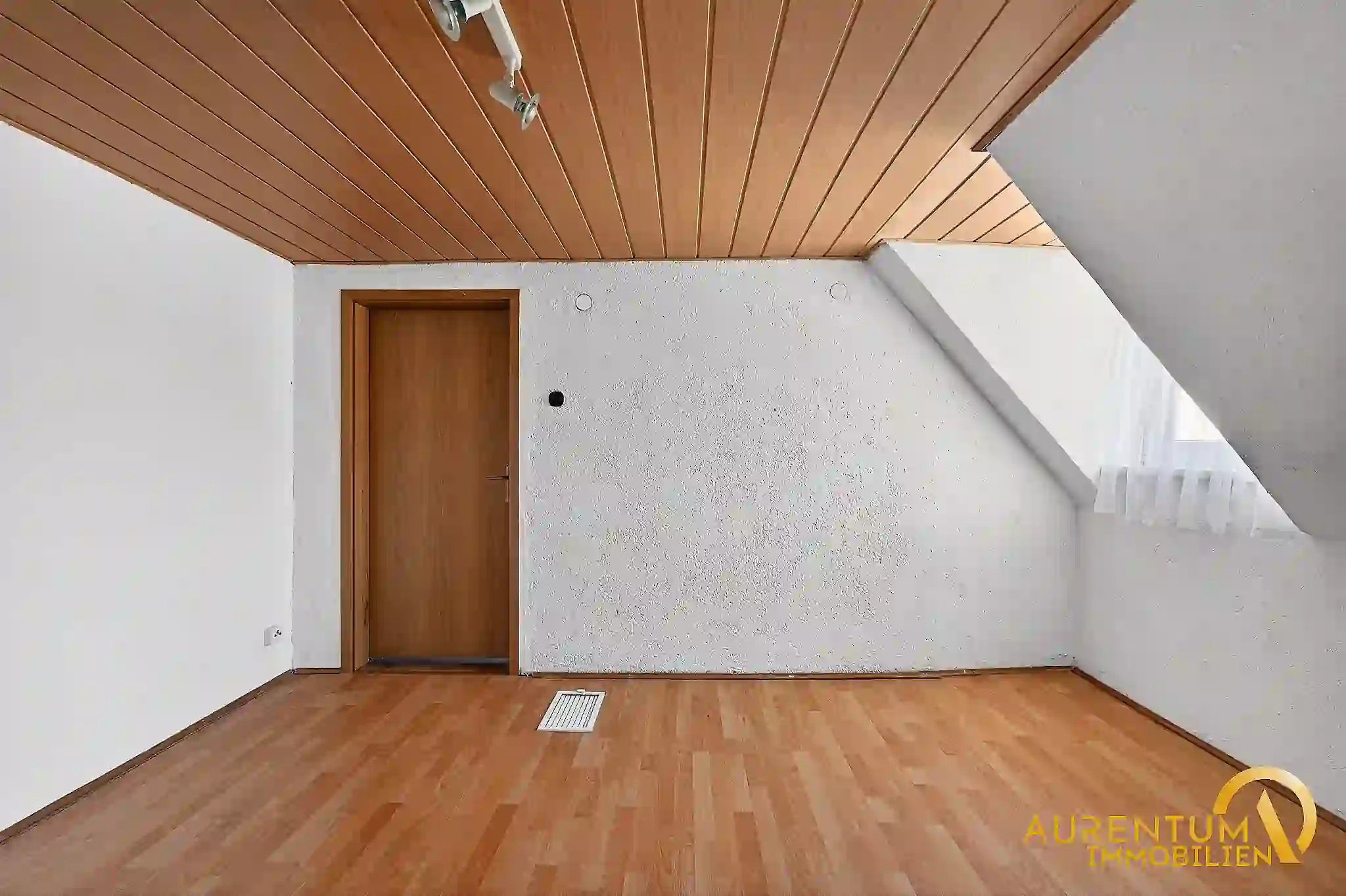 Im Obergeschoss stehen Ihnen mehrere Räume zur Verfügung, darunter ein Kinderzimmer, ein Schlafzimmer mit angrenzendem Ankleidezimmer sowie ein weiterer Abstellraum. Der offene Flur- bzw. Galeriebereich sorgt für ein angenehmes Raumgefühl und bietet Zugang zum Spitzboden, der zusätzliche Nutzfläche bereithält.
