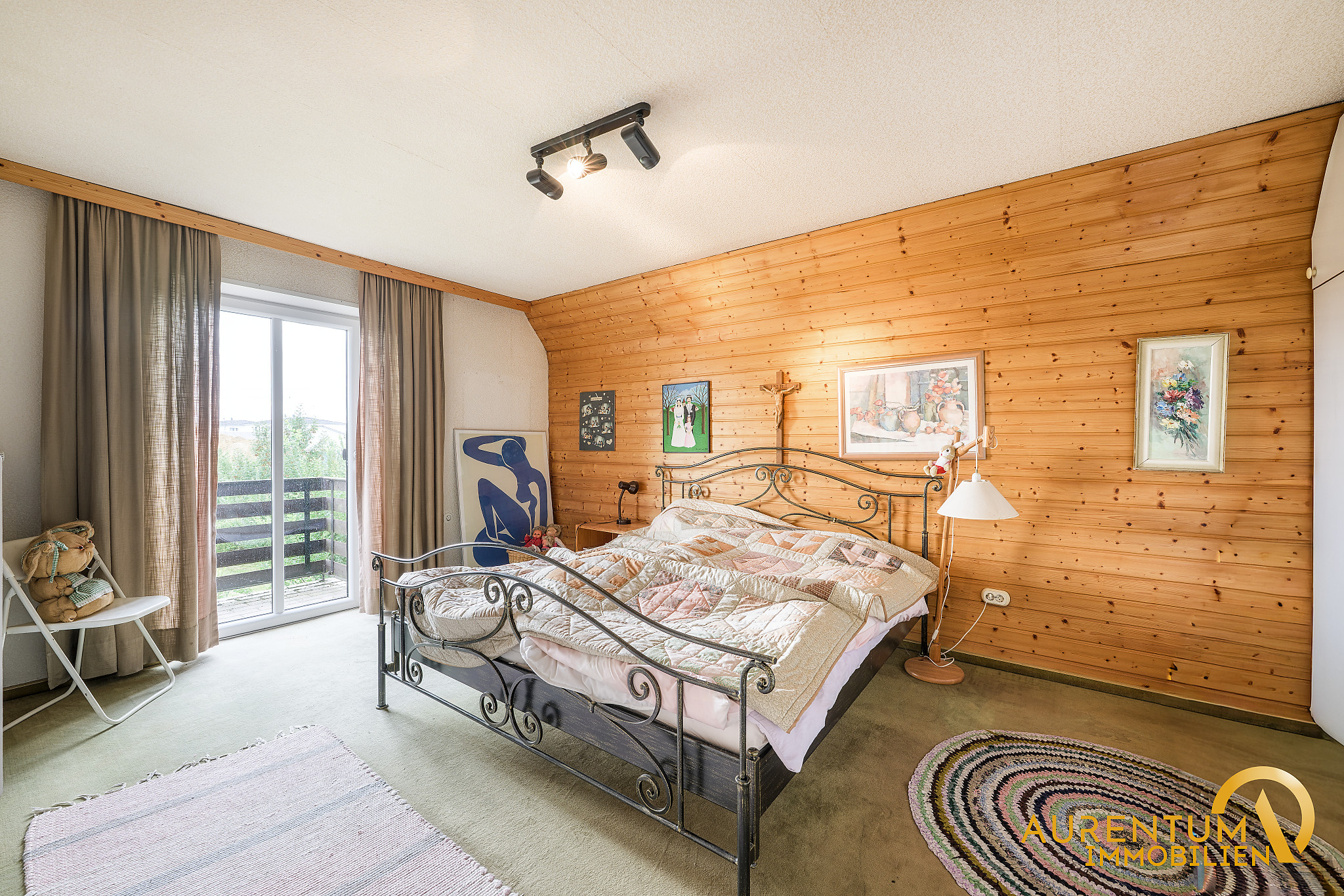 - Schlafzimmer mit großen, bodentiefen Fenster