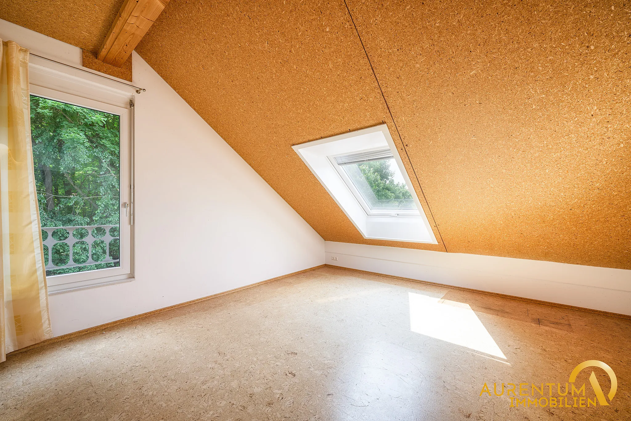 Der Spitzboden, zugänglich über eine praktische Zugleiter, bietet ca. 58 m² zusätzliche Nutzfläche. Diese ist optimal für Stauraum oder als weiteres Ausbaupotenzial nutzbar. Der im Jahr 2023 installierte PV-Speicher sowie die moderne Technik der Wohnraumbelüftung sorgen für zusätzliches Wohlfühlklima und Energieeffizienz.