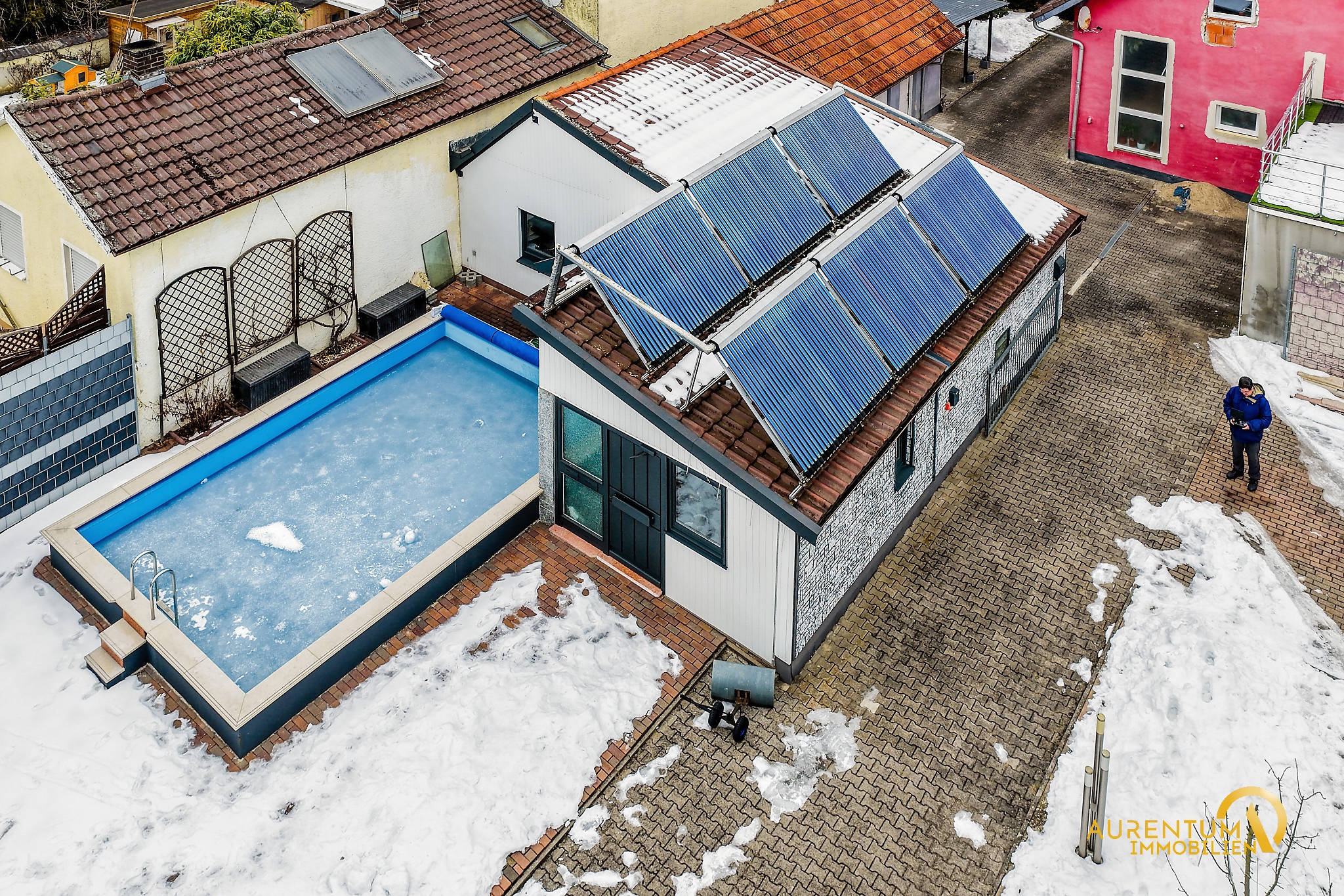 * Außenpool mit Warmwasser durch die Solarthermie