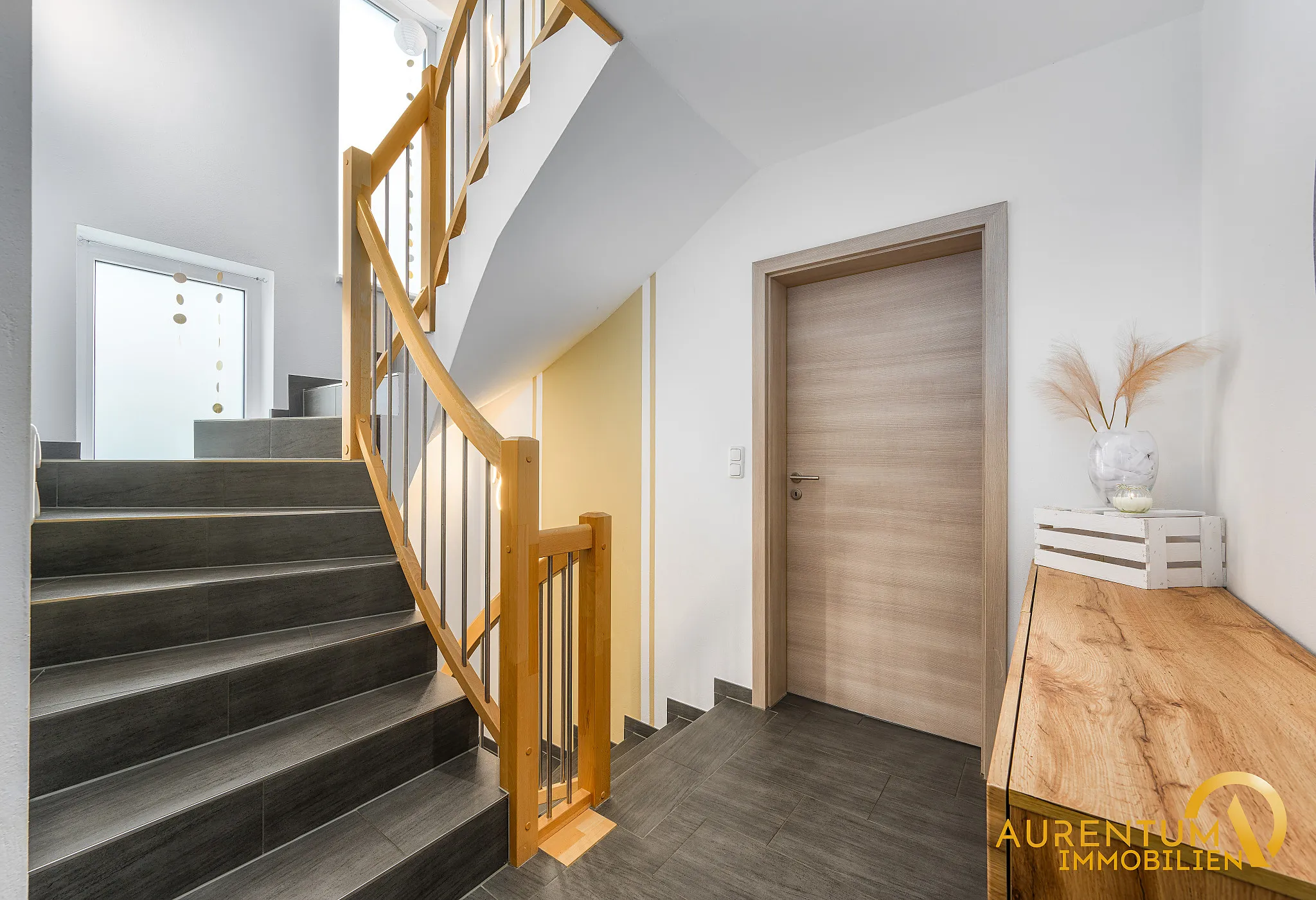 Die Immobilie wurde in massiver Bauweise als KfW 70 Effizienzhaus errichtet und zeigt viele energieeffiziente Annehmlichkeiten auf, um für die Zukunft gewappnet zu sein. 3-fach verglaste Kunststofffenster, eine Luft-Wasser-Wärmepumpe gepaart mit einer PV-Anlage mit 7,29 kWp aus dem Jahr 2023 und der Speicher mit 7,50 kWh sind eine ideale Kombination, um die Kosten niedrig zu halten und eine gewissen Autarkie zu gewährleisten.