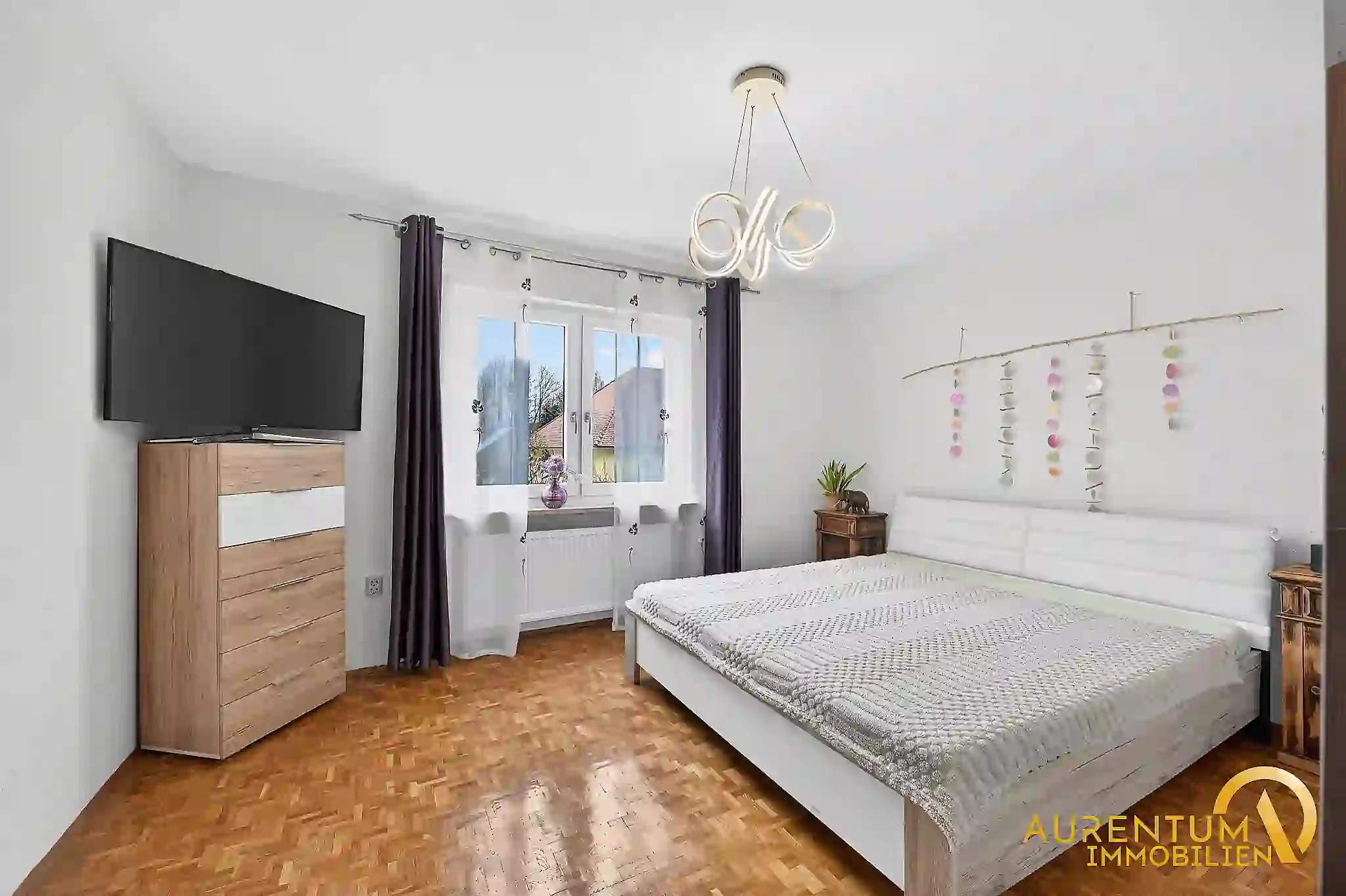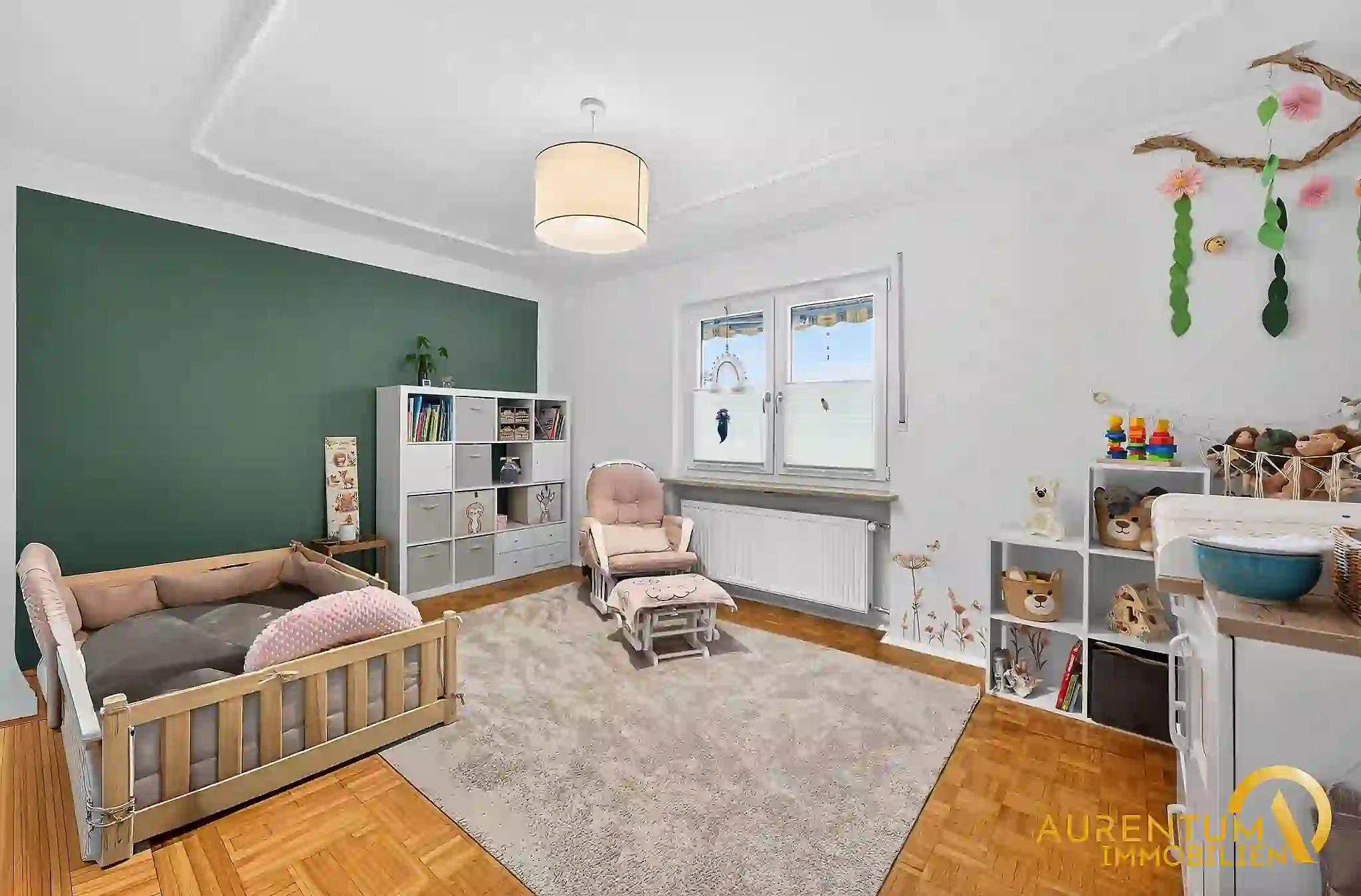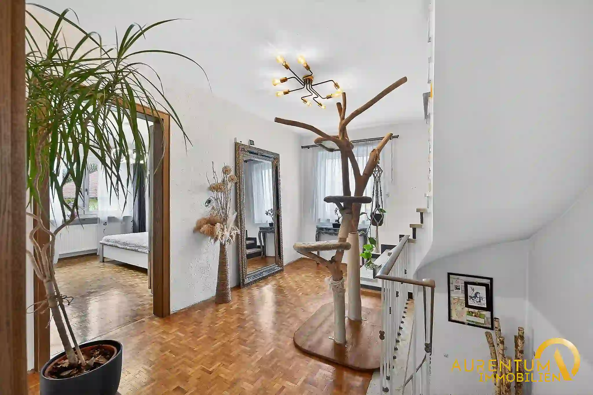 Im Obergeschoss stehen Ihnen insgesamt vier Schlafzimmer zur Verfügung, darunter ein großzügiges Elternschlafzimmer mit Zugang zum sonnigen Südbalkon. Die Räume sind hell, gut geschnitten und bieten ausreichend Platz für die ganze Familie.