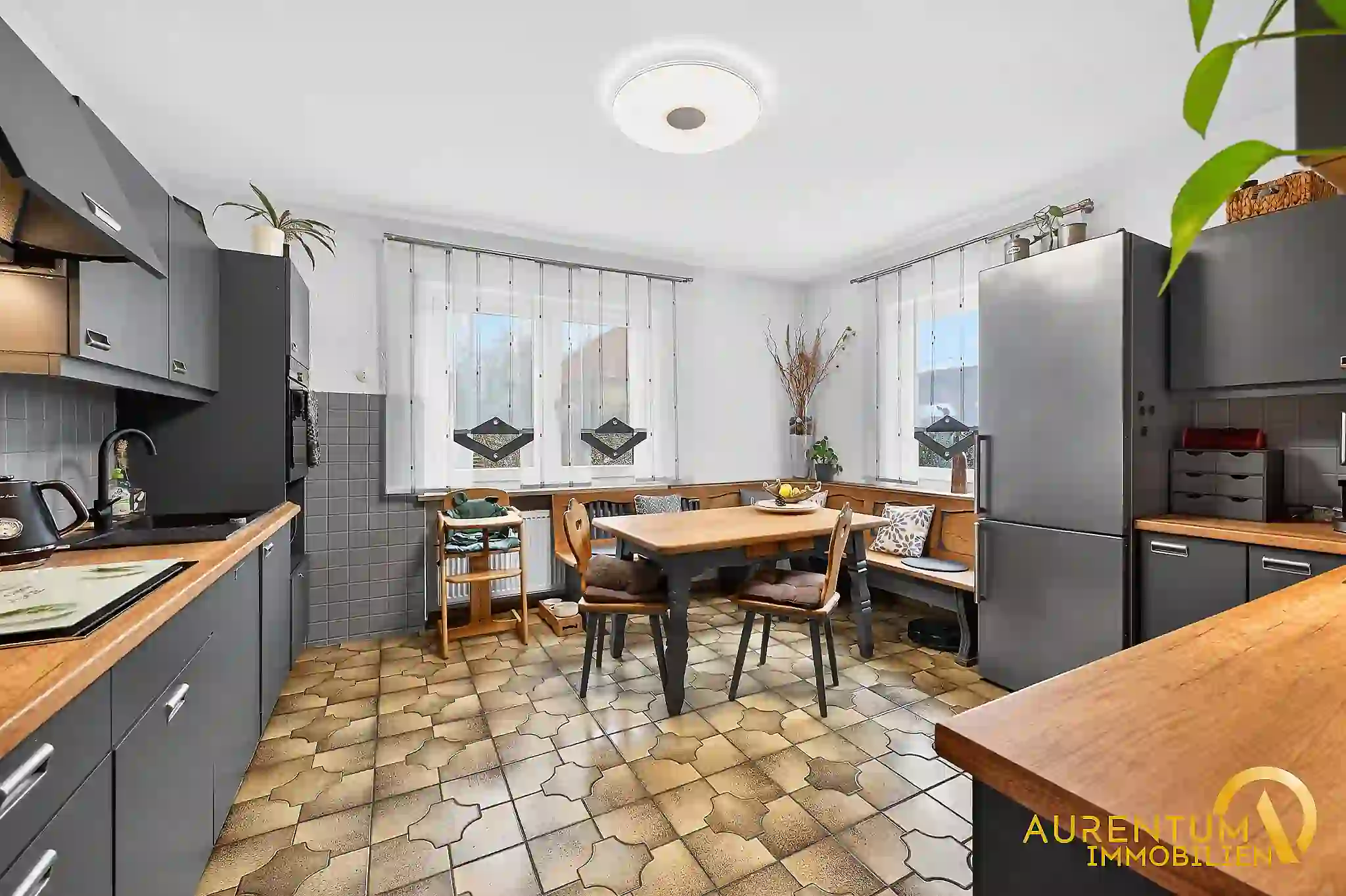 - Wohnküche samt Einbauküche mit Markenelelektrogeräten (Siemens)