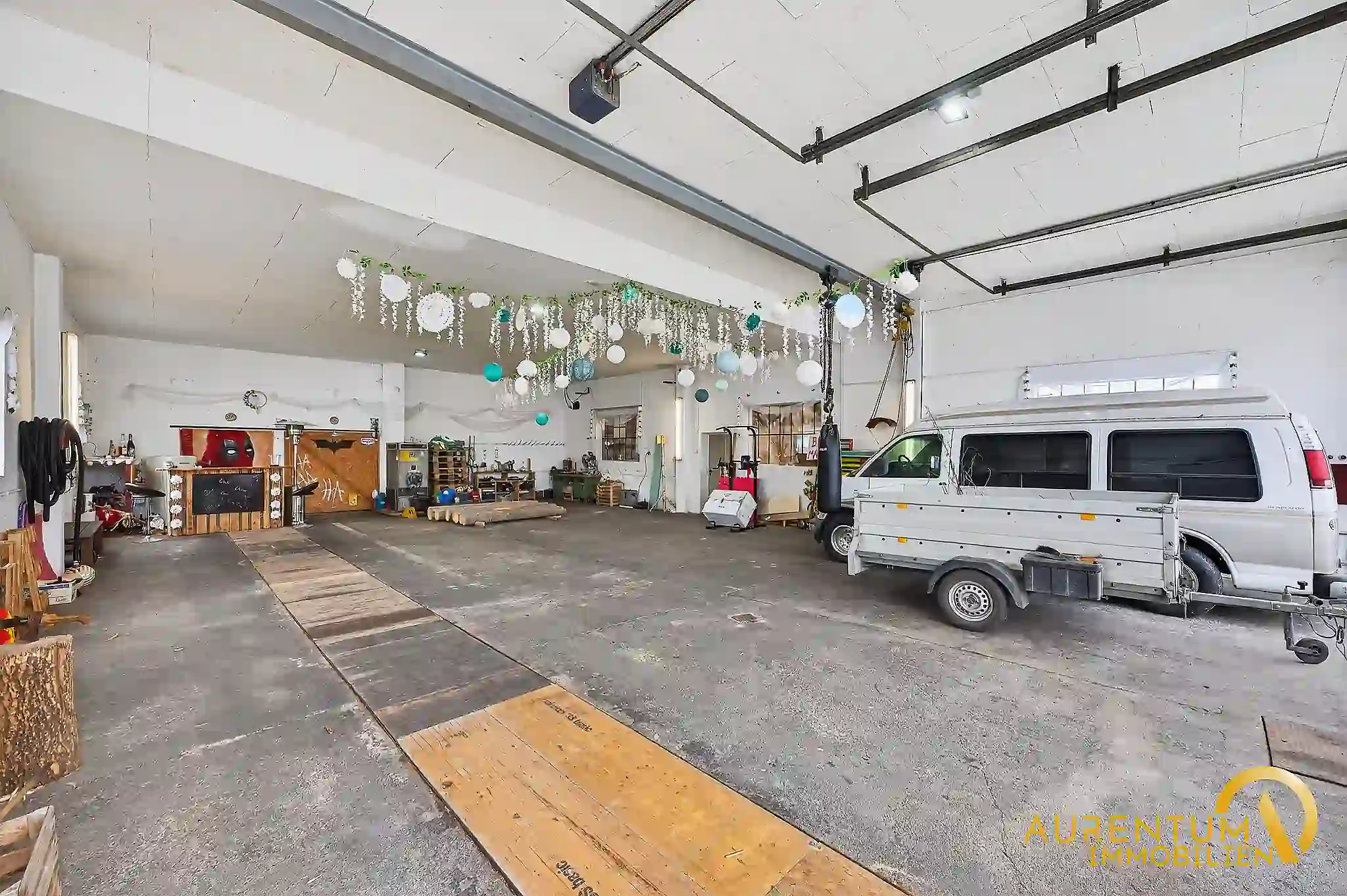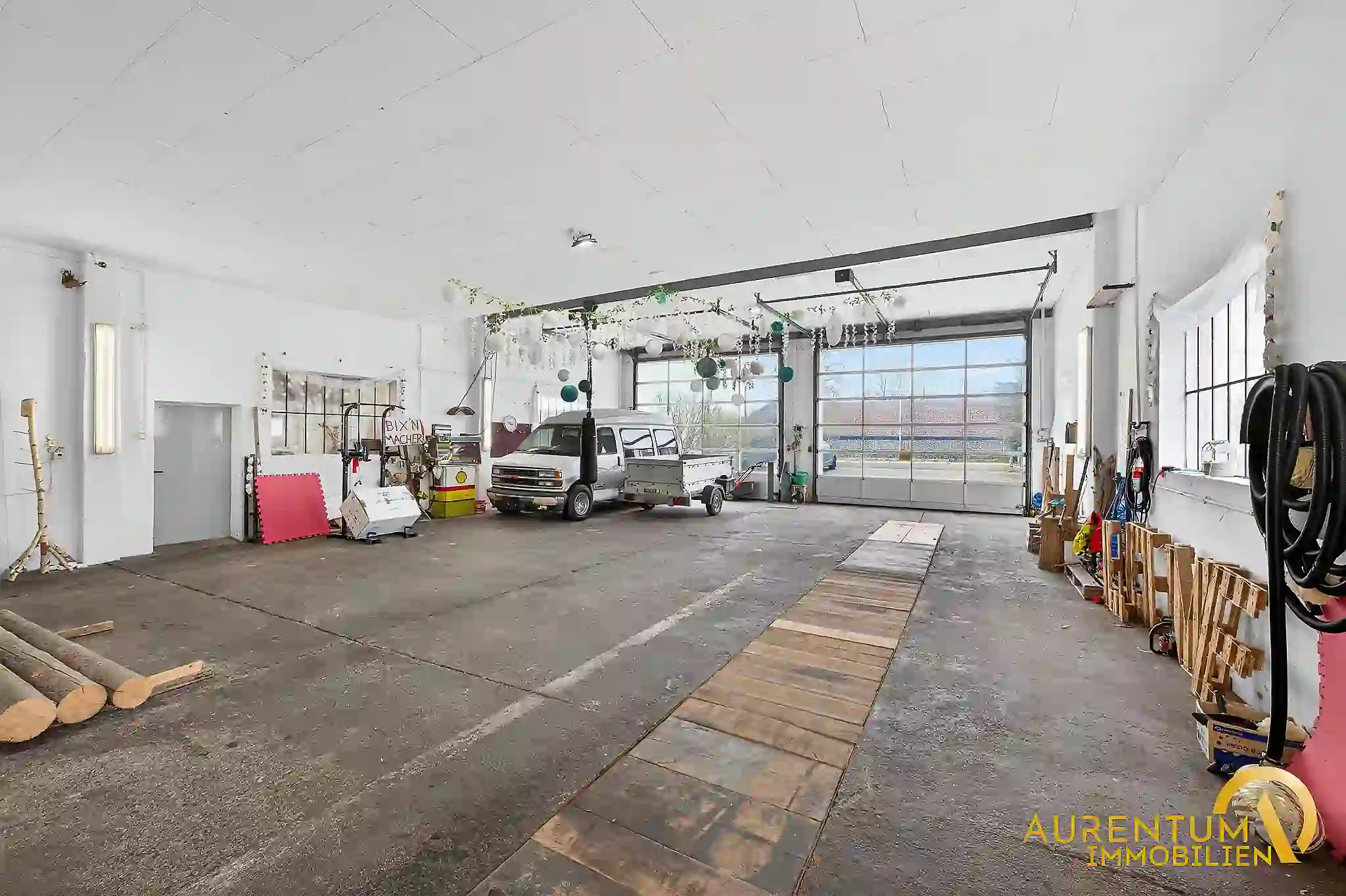 Ein weiteres Alleinstellungsmerkmal ist die große Halle bzw. LKW-Garage mit umfangreicher Ausstattung. Ob für gewerbliche Nutzung, Hobbys oder als Werkstatt – hier stehen Ihnen vielseitige Möglichkeiten offen. Die Halle verfügt über elektrische Sektionaltore, Starkstromanschlüsse, eine Grube, Druckluftleitungen, Kräne sowie ausreichend Platz auch für größere Fahrzeuge oder Maschinen. Ergänzt wird dies durch Nebenräume, eine beheizbare Einheit sowie eine tragfähige Bodenplatte für Schwerlast.