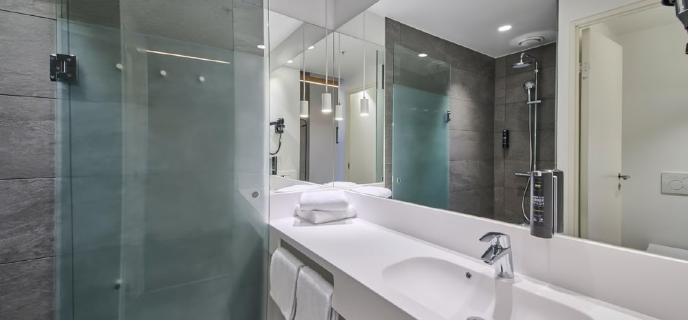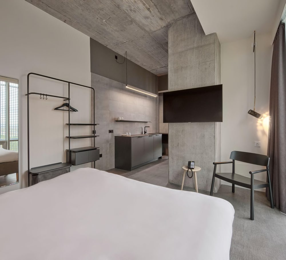 Die Hotelzimmer sind vollständig möbliert und hochwertig ausgestattet. Dazu gehören komfortable Betten, funktionale Einbaumöbel, Stauraumlösungen, Schreibtisch- und Sitzbereiche, Flachbild-TVs sowie moderne Medienanschlüsse. Die Badezimmer verfügen über zeitgemäße Sanitärausstattung mit Dusche, WC und Waschbecken. Ein durchdachtes Beleuchtungskonzept sowie moderne Belüftungs- bzw. Klimatisierungslösungen sorgen für zusätzlichen Komfort.