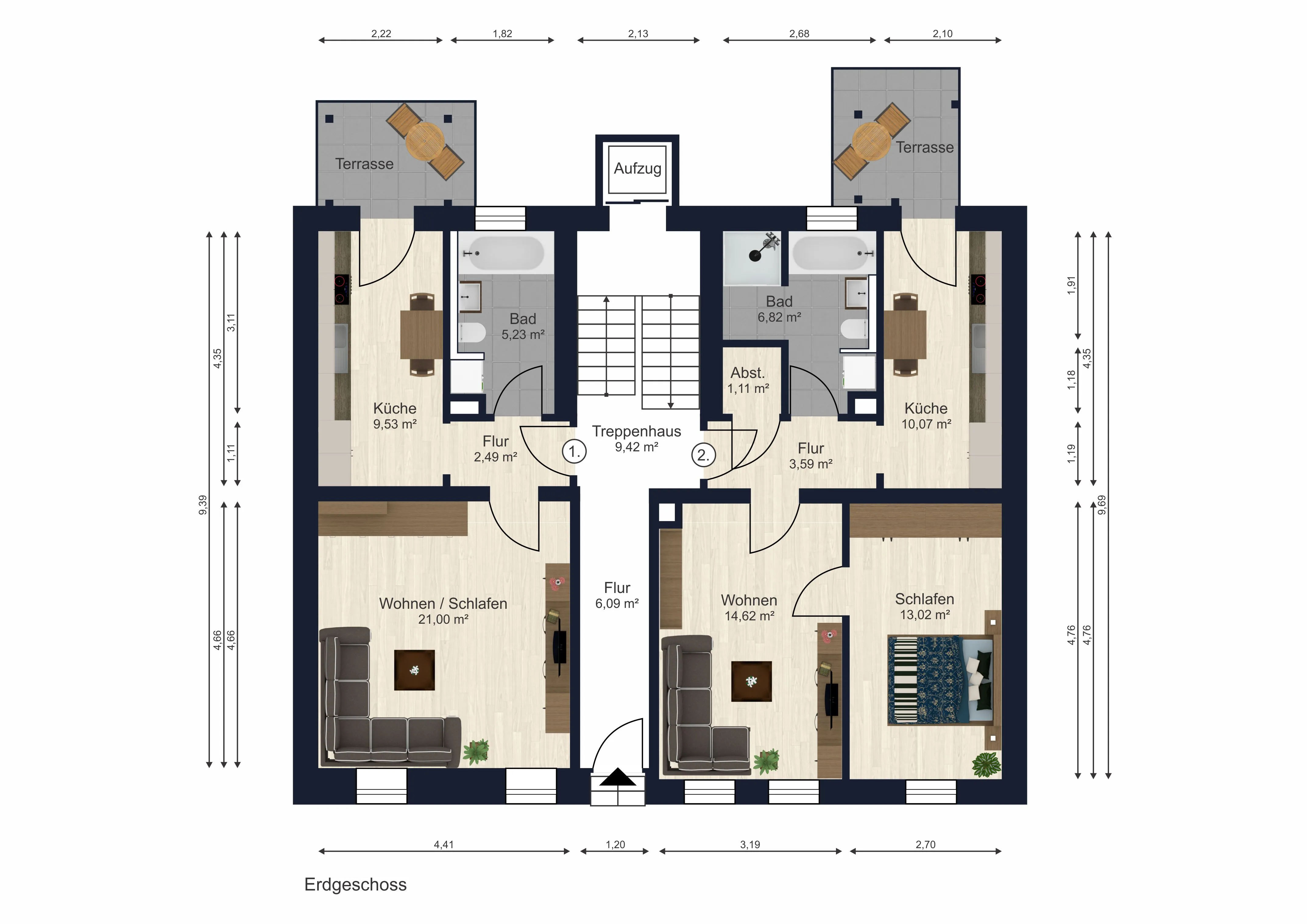 * 2 Wohnungen mit Terrasse (Erdgeschoss)