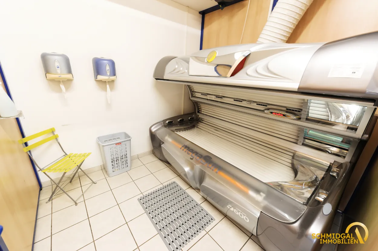 Komplett ausgestattetes Solarium, moderne, gepflegte Ladeneinheit auch für den Einzelhandel möglich mit komplett verglasten