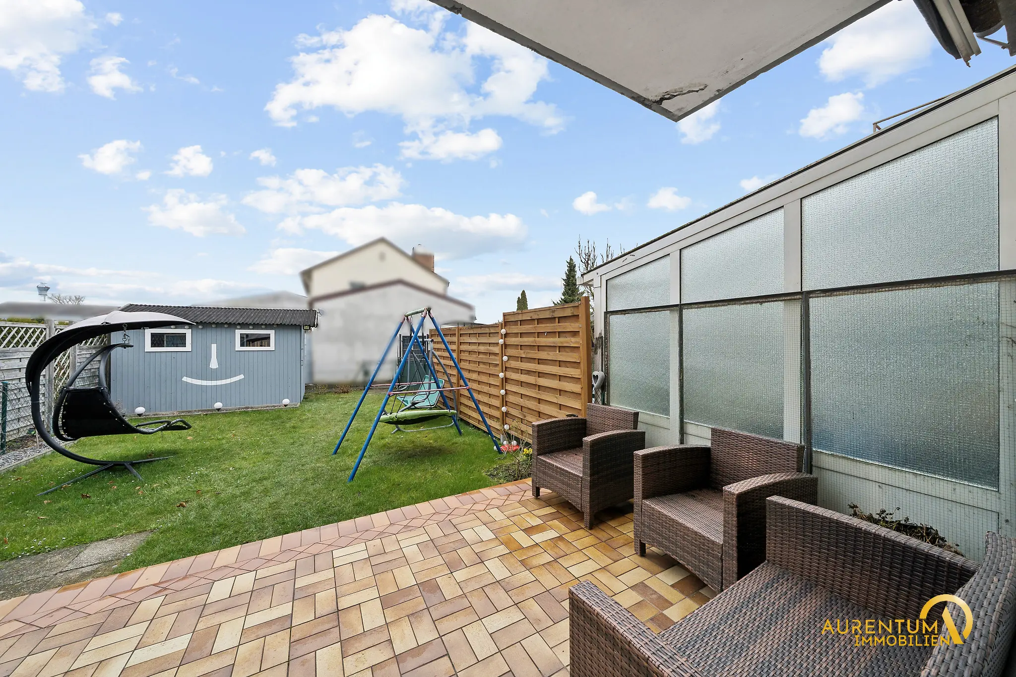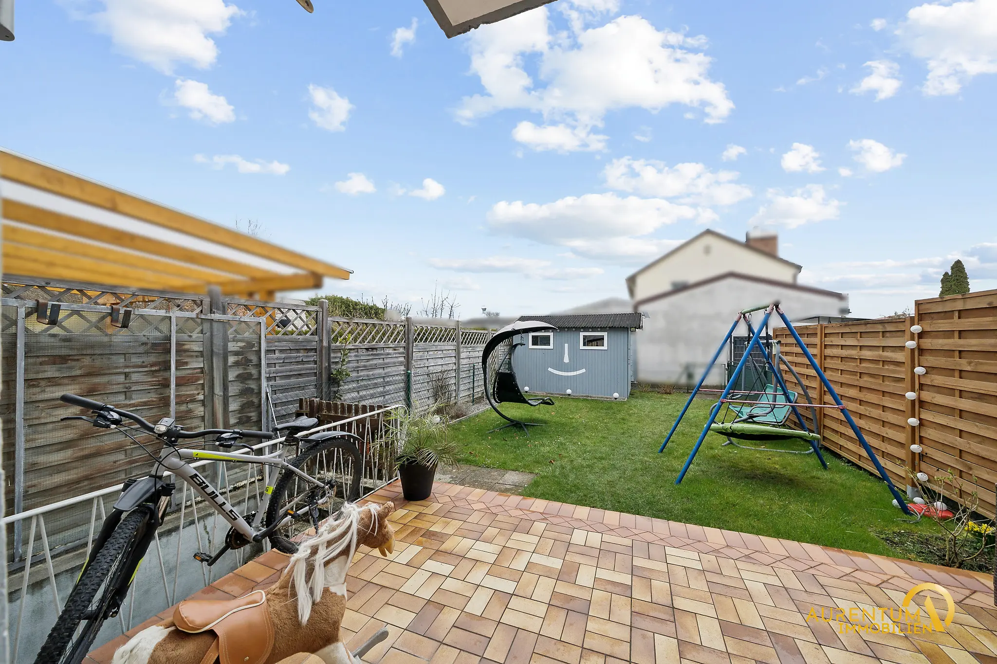 * Vorgarten und Garten mit Terrasse