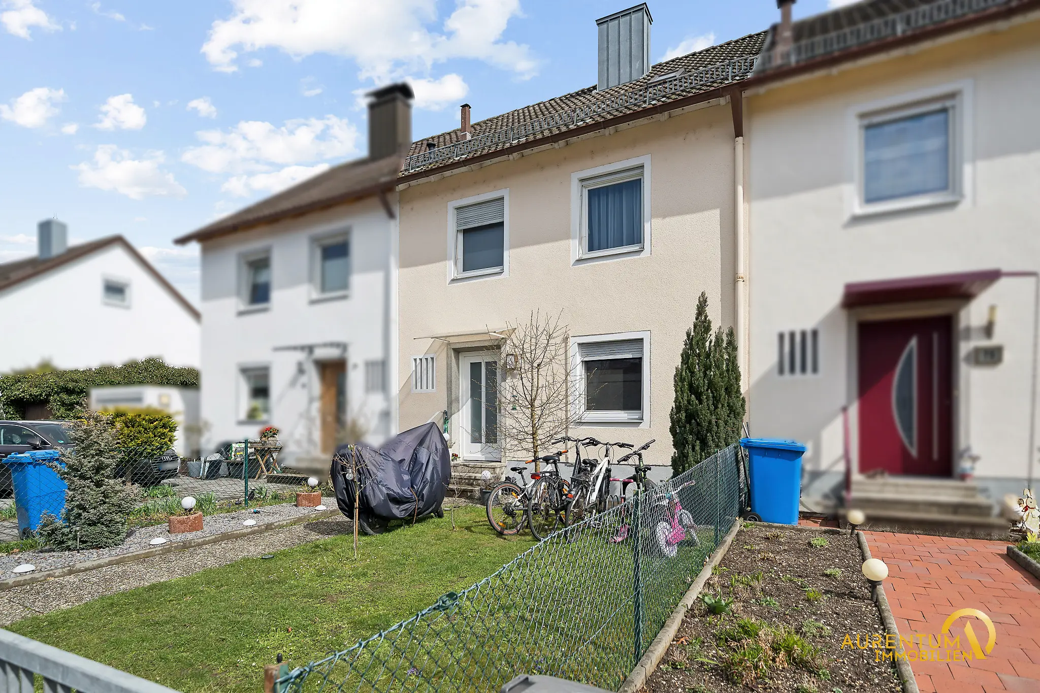 Ein Vorgarten sowie ein privater Garten im hinteren Bereich des Hauses schaffen eine angenehme Wohnatmosphäre im Grünen. Eine Garage gehört ebenfalls zur Immobilie und bietet komfortable Parkmöglichkeiten.