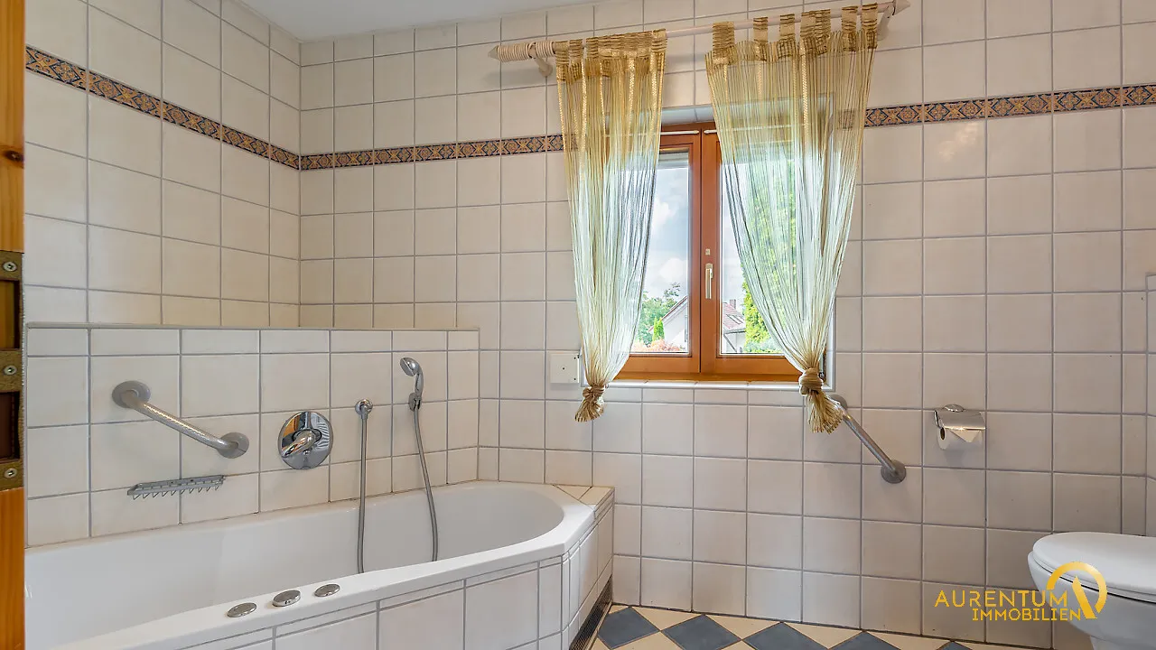 * Tageslichtbad mit Dusche und Eckbadewanne mit Whirlpool-Funktion
